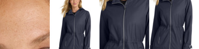 Raw-edge seams around hood opening, pocket seams, cuffs, waistband and side seams