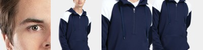 7.5 oz./yd², 55/45 cotton/polyester extra soft fleece Coverstitched throughout White drawcord Pouch pocket