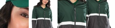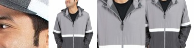 2.5 oz./yd², Micro™ polyester Wind- and water-resistant Adjustable hood with concealed cord locks Spandex bound cuffs Front zippered pockets Zippered pocket on left sleeve Reflective trim Open bottom with adjustable concealed drawcord Adjustable concealed drawcord at waist Back vent with adjustable closure for full decoration access Packs up in utility pocket on left sleeve Woven label