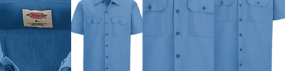 4.25 oz./yd², 65/35 Polyester/cotton, Permanent press poplin Wrinkle Resistant Two piece convertible collar with sewn in stays Hex chest pockets with pencil stall Dickies logo on bottom left side Industrial Laundry, Home Wash Regular sizes available under style LS524