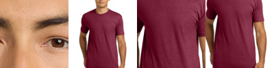 4.3-ounce, 60/40 combed ring spun cotton/poly sueded jersey, 32 singles 1x1 rib knit neck Shoulder to shoulder taping Tear-away label Side seamed Please note: This product is transitioning from satin labels to tear-away labels. Your order may contain a combination of both labels.