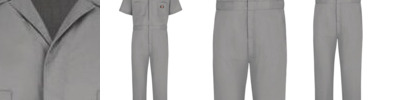 7.5 oz./yd², Twill 65% Polyester/ 35% Cotton Industrial Laundry - Light Soil, Home Wash Durable press Heavy-duty brass ratcheting zipper, single hook-and-eye closure Two slack-style front pockets and one set-in hip pocket with button closure Unhemmed = 34 inseam
