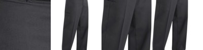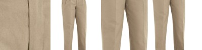 7.5 oz./yd², twill 65/35 polyester/cotton Durable press Brass zipper, single hook-and-eye closure Two slack-style front pockets Two set-in hip pockets, left has button closure