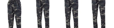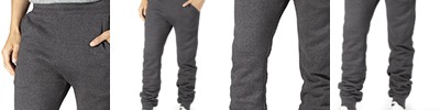6 oz. 100% polyester; Elastic waistband with black drawcord; Faux fly; Knee piping; Back pocket; Side zipper pockets; Hem cuffs;