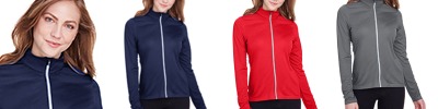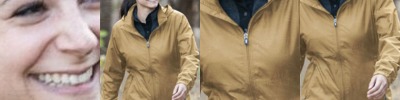 2.36 oz./yd², 100% polyester StormShield™ water-resistant, DWR finish Easy to pack jacket into built-in packable pocket pouch Feminine fit Packable hood with hidden drawcords Zippered hand pockets Elastic cuffs Drop tail hem This product meets the following Sustainable Style subcategory: