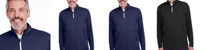 7.5 oz., 55% cotton, 39% polyester, 6% rayon triblend fleece; 1/4-zip placket with off-white zipper tape; Rib collar, cuffs, and waist; Welt pockets;