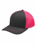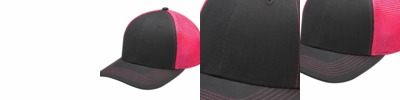 100% brushed cotton, mid-weight twill crown and visor 100% soft nylon mesh back panels Six panel, structured, mid-profile Two-tone Charcoal front panels/visor Semi-flat visor Matching color under visor, eyelets, seam tape and button Charcoal grey twill sweatband on all colors Contrast color top stitching on visor & back mesh panels Contrast color, charcoal snap-back plastic closure matches front panels