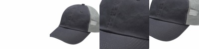 100% cotton, heavy enzyme wash 100% nylon mesh back panels Unstructured, six-panel, low-profile Mid-weight twill crown & visor Pre-curved visor Self-fabric matching color sweatband Seam tape matches mesh back Matching color eyelets Adams flag label on side Snap back plastic closure