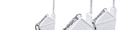 - Includes metal key ring attached and features stock "house'' design In front side of plastic mold