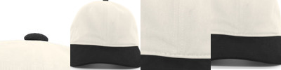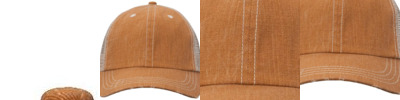 100% Herringbone cotton 100% polyester, mesh back Unstructured, six-panel, low-profile Pre-curved contrast stitch frayed visor Hook-and-loop closure
