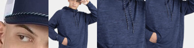 6.8 oz./yd², 100% polyester mélange fleece Scuba shaped three-piece hood with color-contrast lining and drawcord Pouch pocket with internal mesh pocket Raglan sleeves Self-fabric cuffs Open bottom Woven label