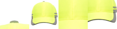 100% polyester 100% nylon mesh back Structured, six-panel, mid-profile Pre-curved visor with reflective binding, black undervisor Reflective hook-and-loop closure