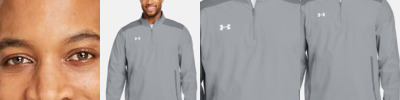 - UA woven label centered on left sleeve hem and UA heat seal center back neck
