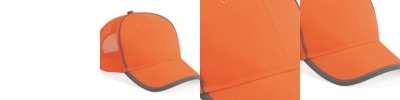 100% polyester 100% nylon mesh back Structured, six-panel, mid-profile Pre-curved visor with reflective binding, black undervisor Reflective hook-and-loop Closure