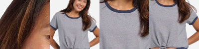 5.31 oz./yd², 100% cotton Regular, relaxed fit Contrast trim at neck and sleeve hem Tie-front cropped length 1 1/16" stripe detail 2 NDL bottom hem